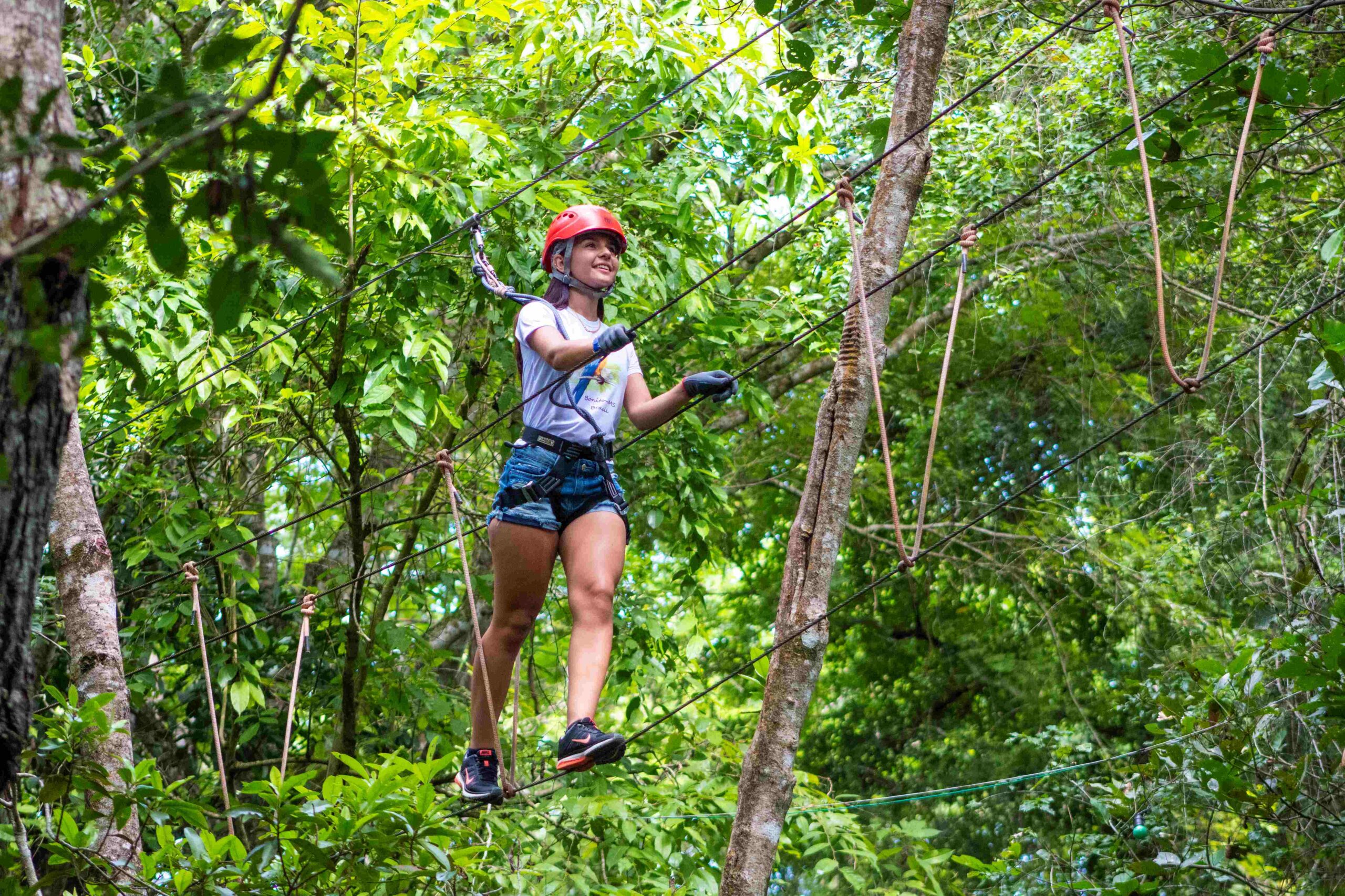 A altura média do circuito varia entre 4 e 8 metros do solo, permitindo uma sensação real de aventura, mas sem exigir preparo físico avançado ou experiência prévia. O foco do Arvorismo Cabanas é o equilíbrio, coordenação motora e superação pessoal, sempre em um ritmo controlado.