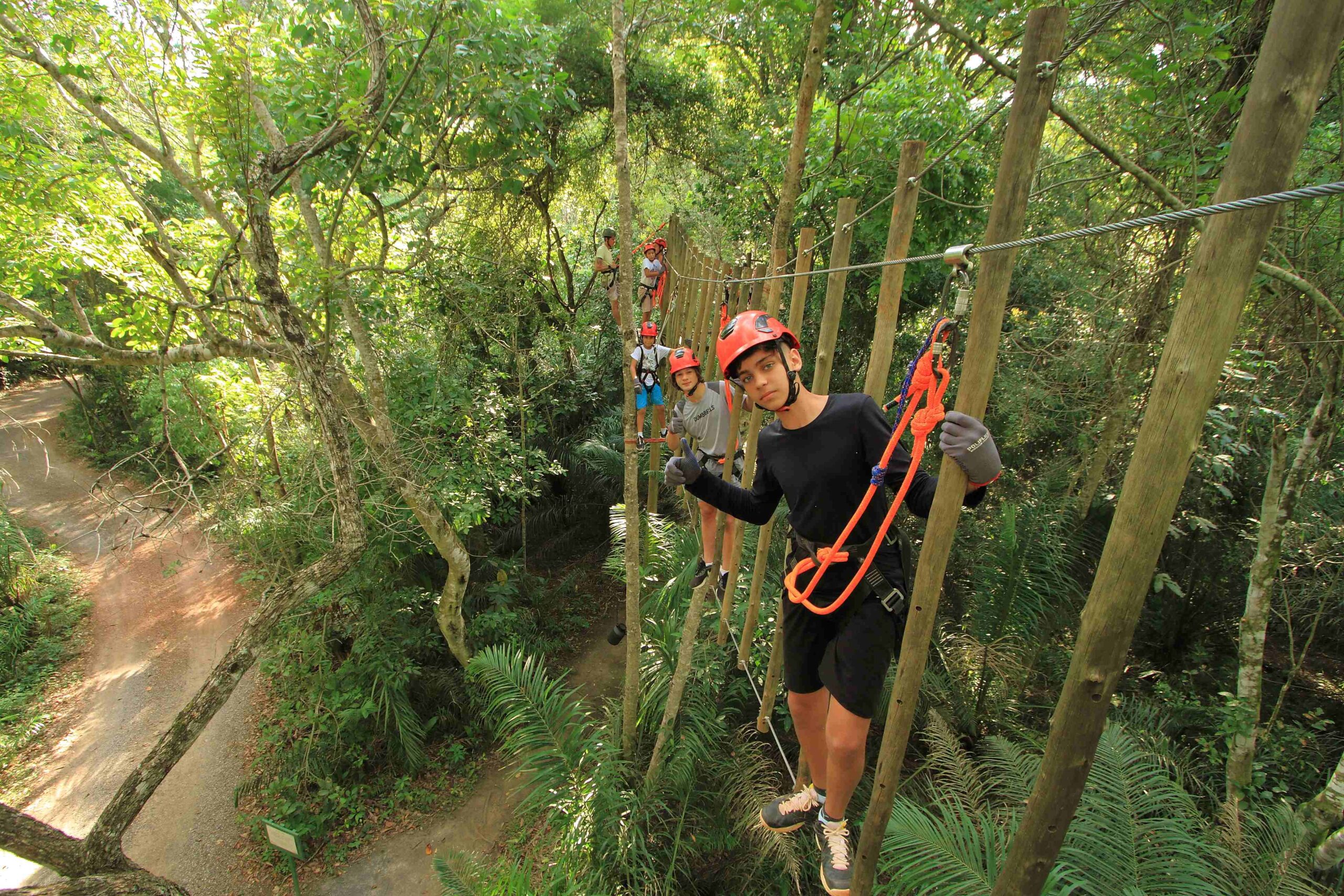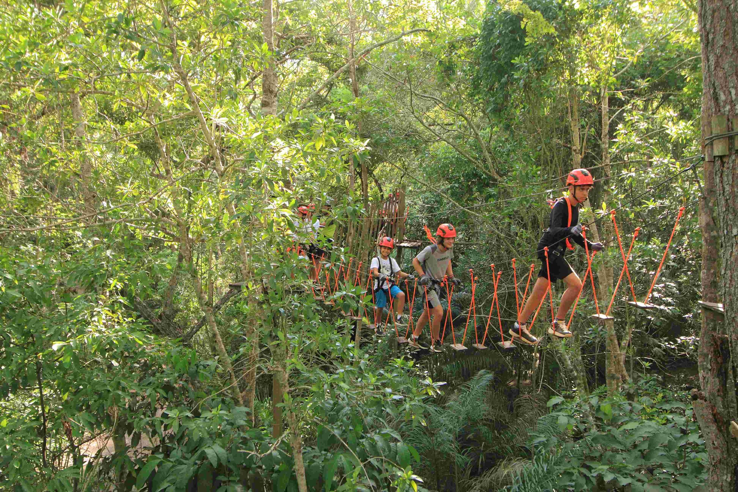 O arvorismo é realizado em circuito suspenso, onde o participante avança de plataforma em plataforma utilizando passarelas de madeira, cabos de aço, pontes suspensas, redes e outros obstáculos. Todo o trajeto é feito com o visitante conectado a um sistema de segurança contínuo, que impede quedas durante o deslocamento.