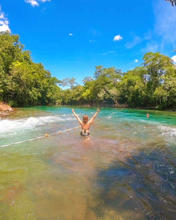 É um local tranquilo, cercado por mata e com trilhas leves que levam a pontos de banho rasos e fundos. As margens do rio são seguras e acessíveis, perfeitas para banho, descanso ou flutuação leve com máscara e snorkel.