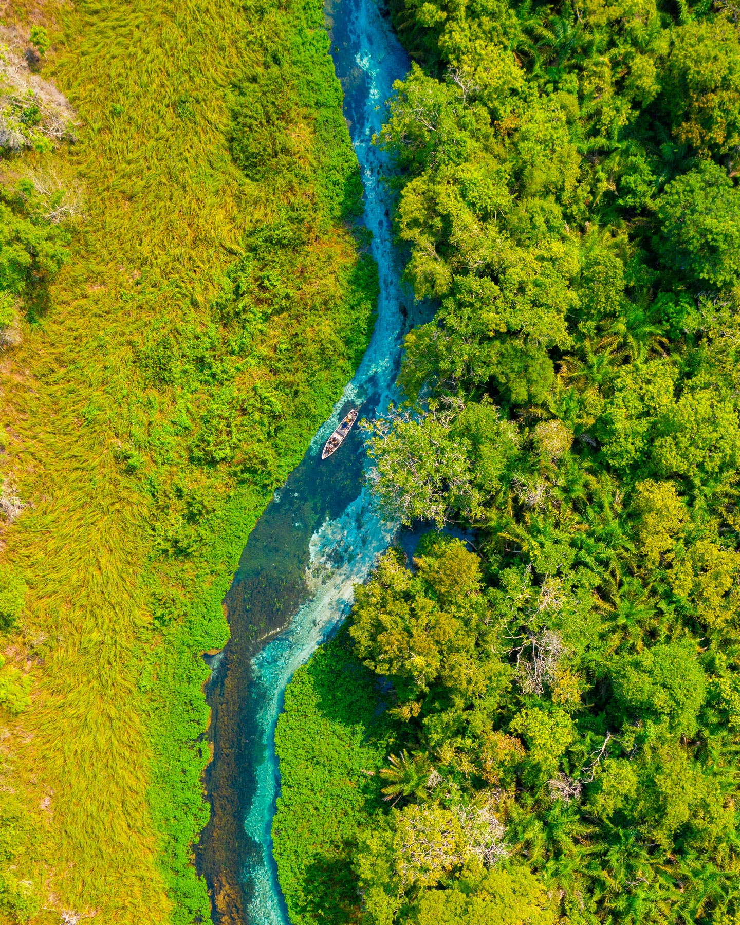 Ao término da trilha, chega-se ao deque principal, ponto de embarque para o passeio de barco elétrico. Essa embarcação silenciosa e ecológica conduz o grupo rio acima por cerca de 1.300 metros, permitindo uma imersão sensorial na serenidade do ambiente. Durante o trajeto, é comum avistar diversas espécies da fauna local, como macacos-prego saltitando entre os galhos, capivaras descansando nas margens e uma variedade impressionante de aves, incluindo martins-pescadores e garças.