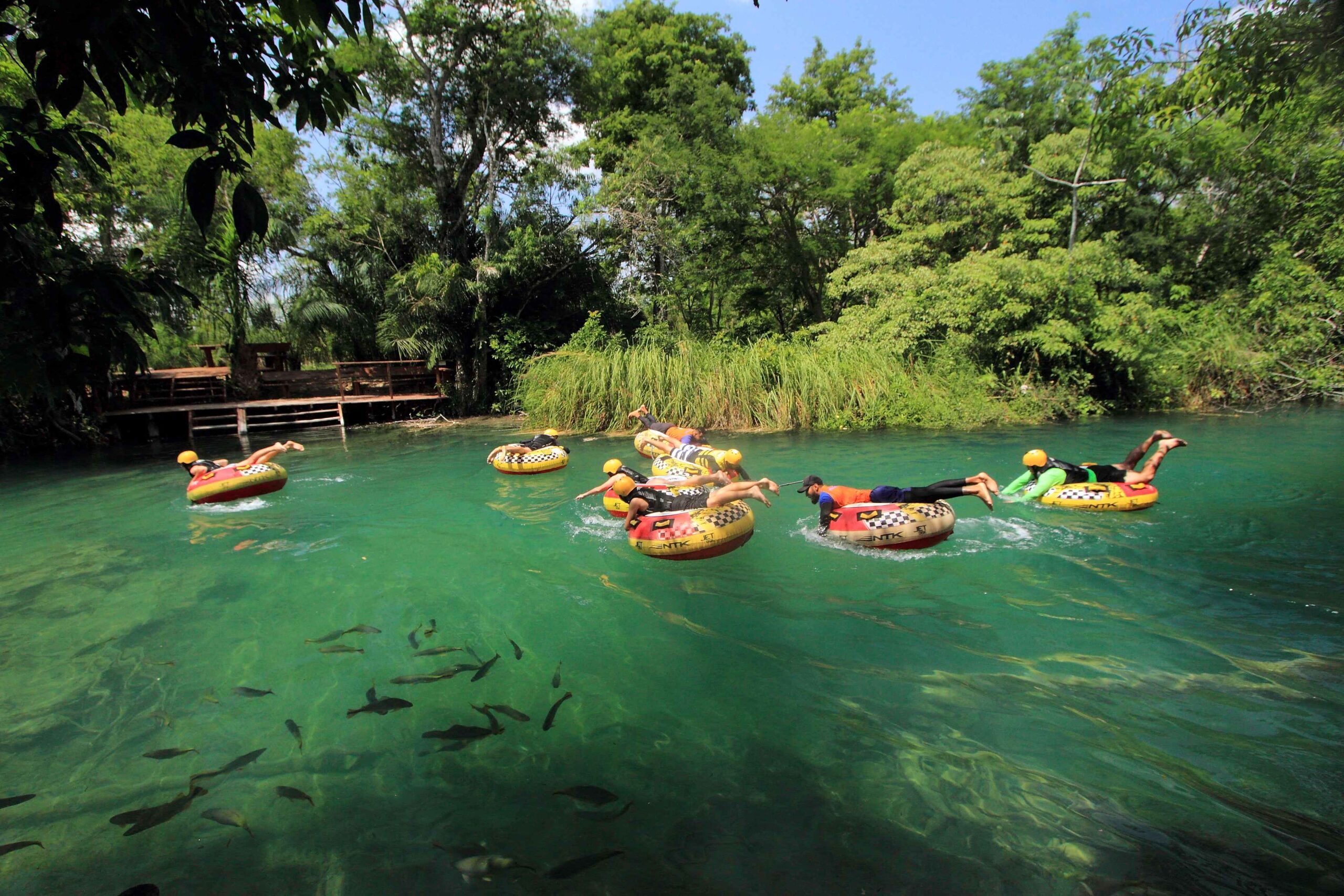 O Boia Cross Cabanas é um passeio de descida em boia individual pelo Rio Formoso, indicado para quem quer uma atividade animada, em contato direto com o rio, sem entrar no perfil de aventura radical. A experiência acontece dentro do Complexo Cabanas, um dos atrativos mais tradicionais de Bonito, conhecido pela boa estrutura e fácil acesso a partir do centro da cidade.