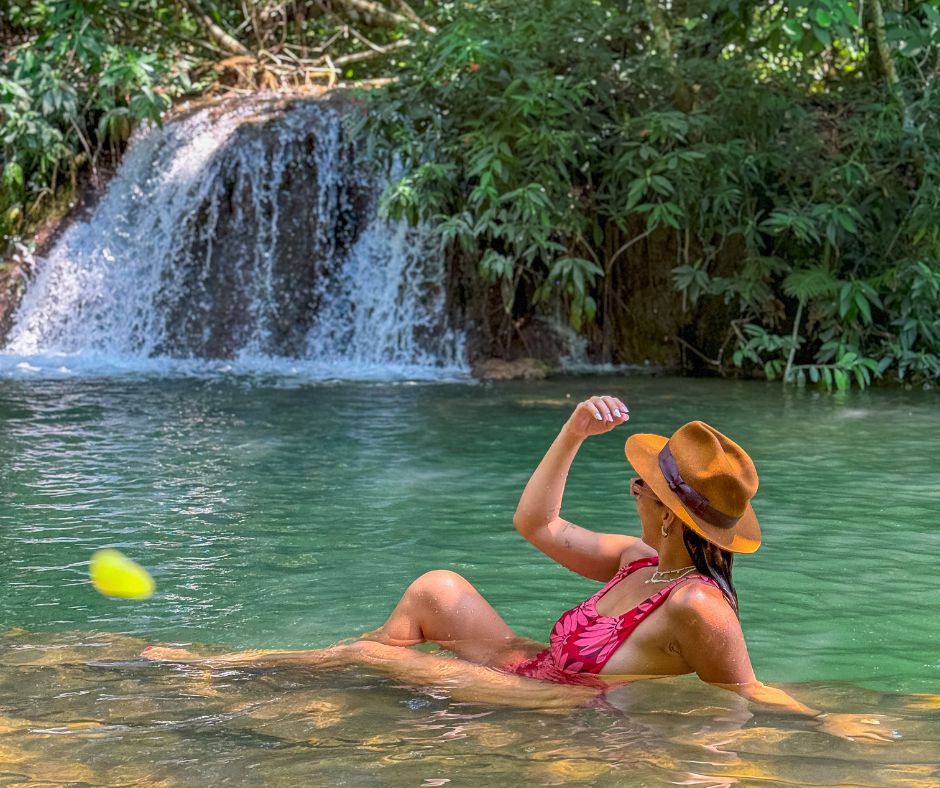 Na parte da tarde, o Ceita Corê ainda reserva um momento especial: o banho e a flutuação na nascente do Rio Chapena. Localizada dentro de uma caverna submersa, a nascente possui águas cristalinas e calmas, ideais para a flutuação com colete salva-vidas. É uma experiência única e contemplativa, onde a beleza das formações rochosas submersas e a luz natural que entra pela fenda tornam o momento mágico. Todo o percurso é acompanhado por guia local treinado, garantindo segurança e interpretação ambiental ao longo do passeio.