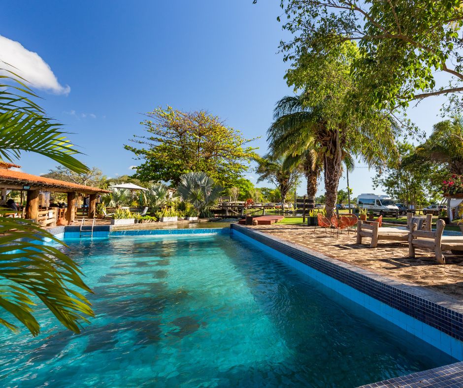 Além das trilhas e da flutuação, a sede da fazenda oferece infraestrutura completa para descanso e lazer. Piscina natural com deck, redário à sombra das árvores, bar, mesas de jogos, lojinha de lembranças e sinal de Wi-Fi deixam o visitante à vontade para curtir o restante do dia no próprio local. Tudo isso faz do Ceita Corê um dos melhores passeios de dia inteiro em Bonito, ideal para famílias, casais e viajantes que desejam uma experiência rica em natureza, tranquilidade e hospitalidade.