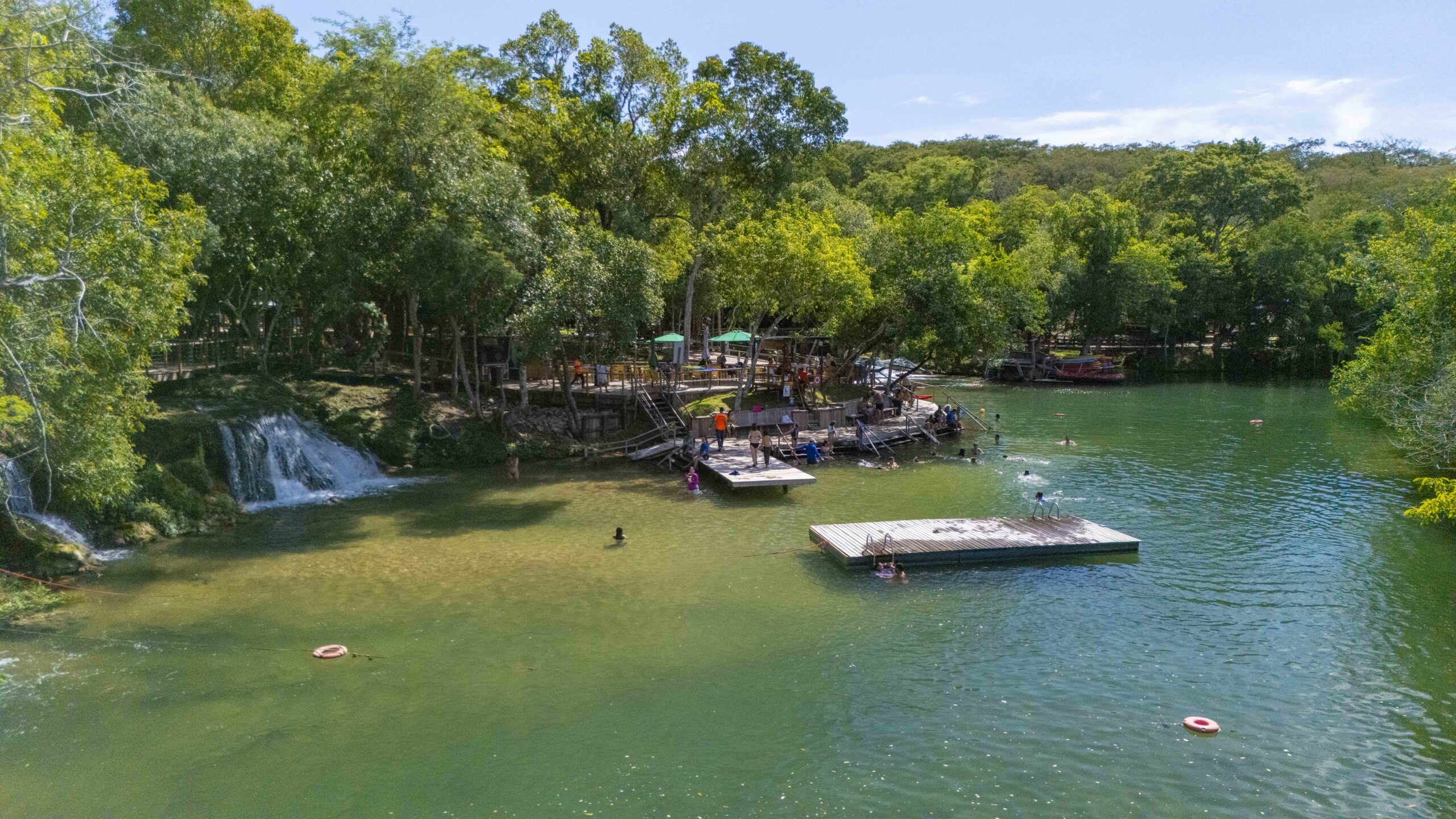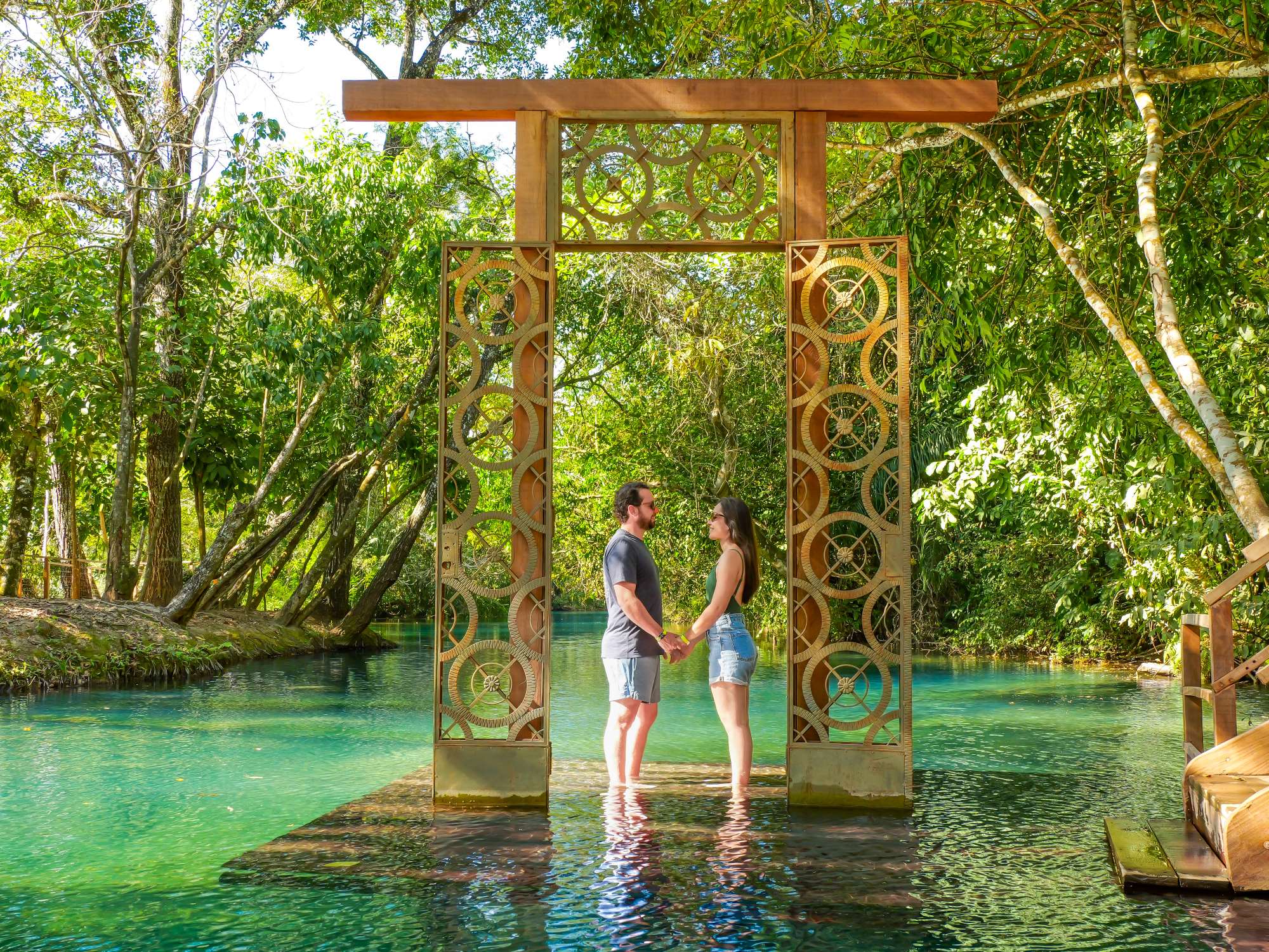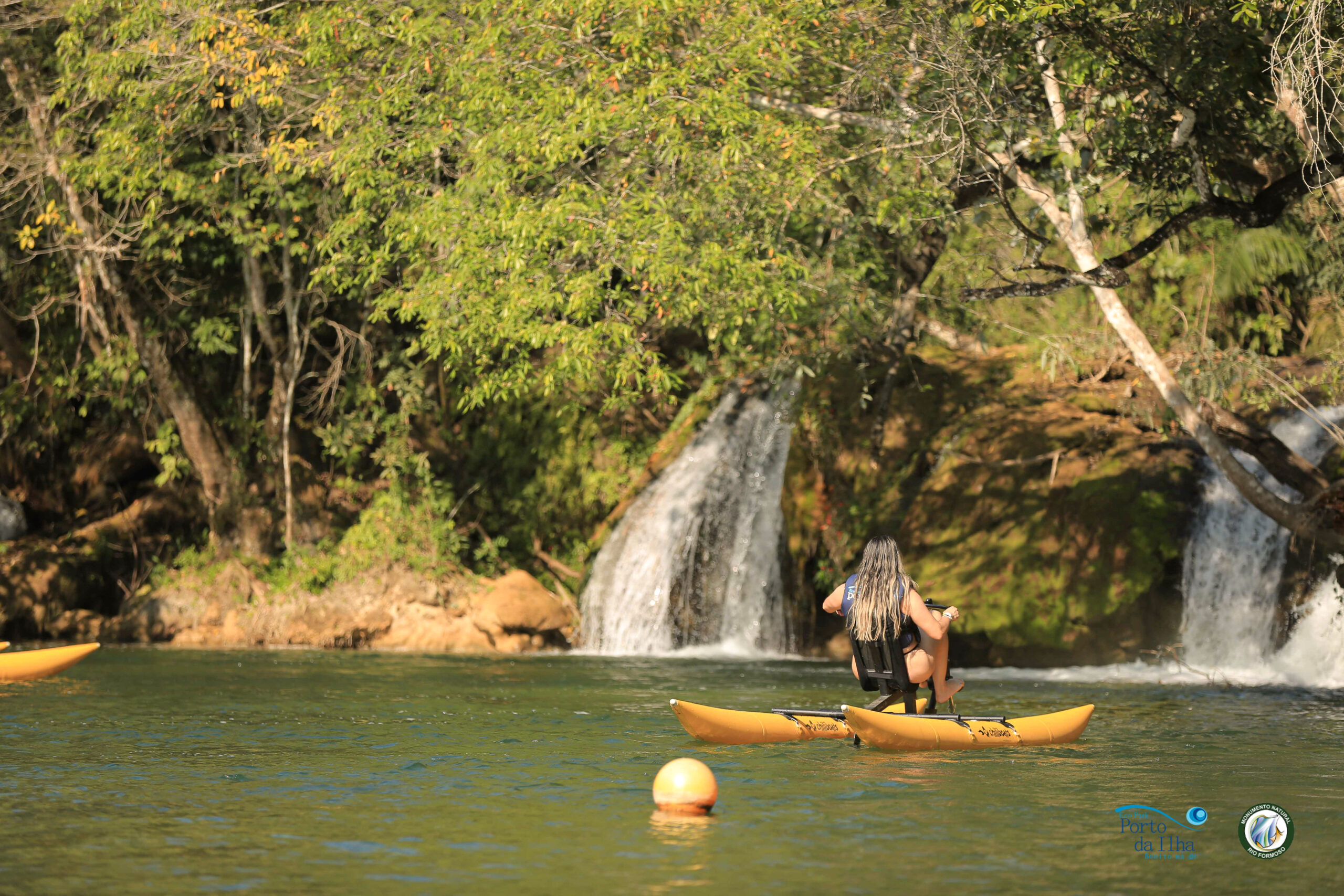 O Eco Park Porto da Ilha é um dos balneários mais conhecidos de Bonito, localizado às margens do Rio Formoso. O visitante pode passar o dia inteiro no local, aproveitando áreas de banho, decks, cachoeiras, trilhas e passarelas. Além do day use, o atrativo oferece várias atividades opcionais de aventura, como passeio de bote, boia cross, duck (caiaque inflável), stand-up paddle, bike boat e barco elétrico. É um passeio flexível: quem quiser apenas relaxar fica à vontade, e quem busca emoção pode contratar atividades extras. Fica a aproximadamente 12 km do centro de Bonito, com acesso fácil e bem sinalizado.