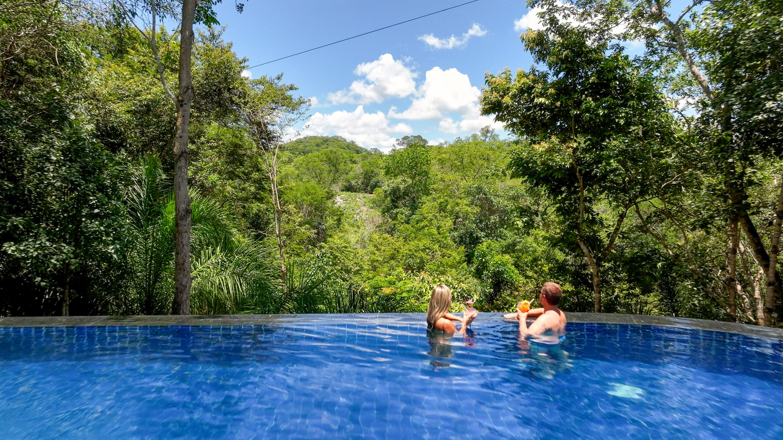 O passeio no Parque das Cachoeiras funciona com uma operação bem organizada e voltada pra quem quer curtir a natureza com tranquilidade. Logo na chegada, os visitantes são recebidos no receptivo principal, onde há uma área ampla com restaurante, loja, vestiários, redário e até uma piscina de borda infinita com vista pro Rio Mimoso — é ali que muita gente encerra o dia depois da trilha.