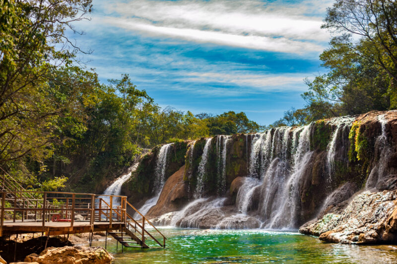 O Parque das Cachoeiras é um dos passeios mais clássicos de Bonito MS, perfeito pra quem curte natureza sem pressa. A trilha é leve e passa por 7 cachoeiras lindas, com paradas pra banho em todas elas. Tem ponte suspensa, mirantes e aquele cenário de cartão postal. Ideal pra ir com amigos, casal ou família. No final ainda dá pra curtir a estrutura com redário, restaurante e lojinha.