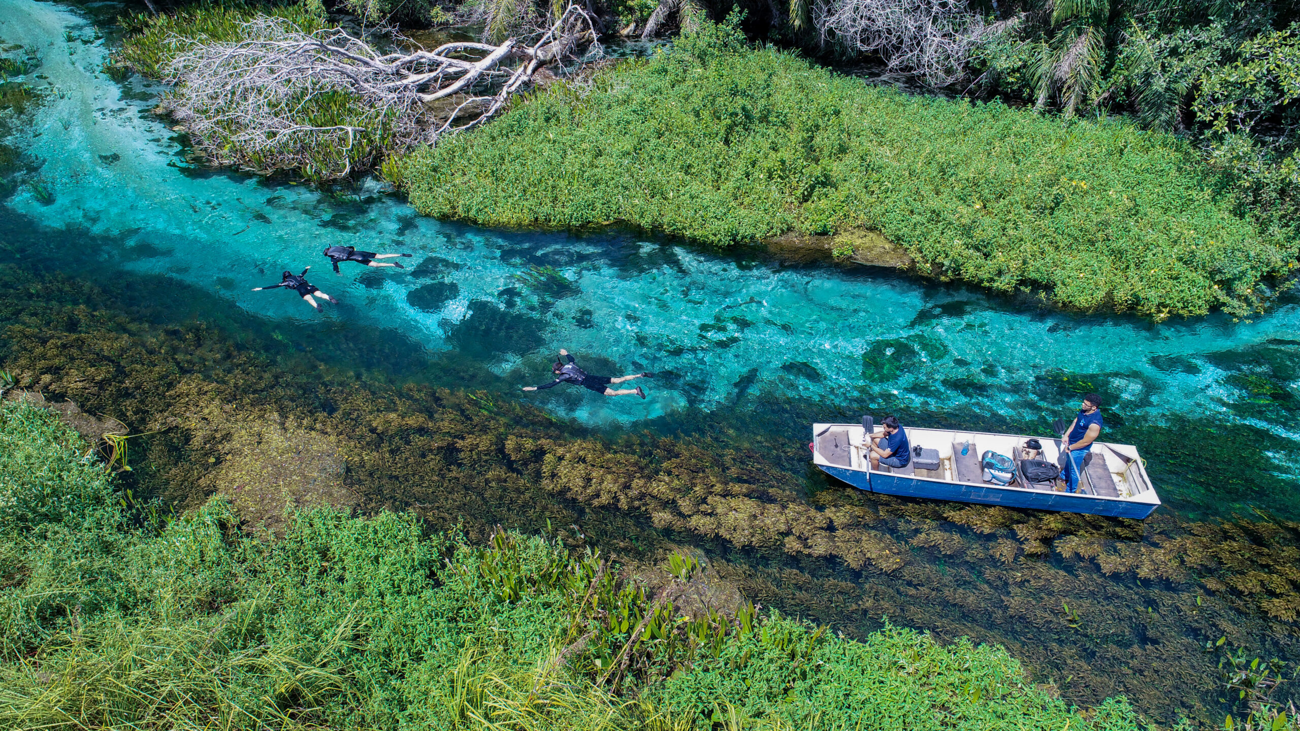 A flutuação começa diretamente na nascente, um grande olho d’água onde a água brota com força do solo, criando a impressão de estar dentro da origem de todo o rio. Esse ponto é considerado um dos mais especiais do passeio, pois dá ao visitante a chance de ver a água nascendo cristalina diante dos olhos.